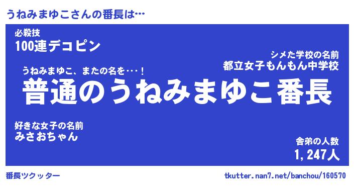 | ヒーロー風カッコイイあだ名 | 『スーパーウネミマユコ』『黄金騎士ウネ』 |