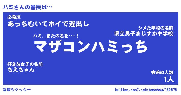 | ヒーロー風カッコイイあだ名 | 『スーパーハミ』『ウルトラハミマン』 |
