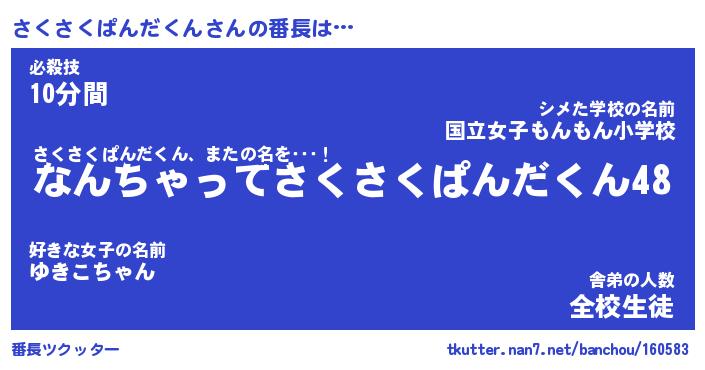 | 伝説のあだ名 | 『伝説のスナイパーさくさくぱんだくん』 |