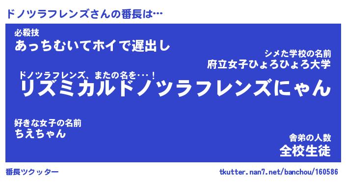 | 意味不明あだ名 | 『ペロリンドノツラフレンズ』 |