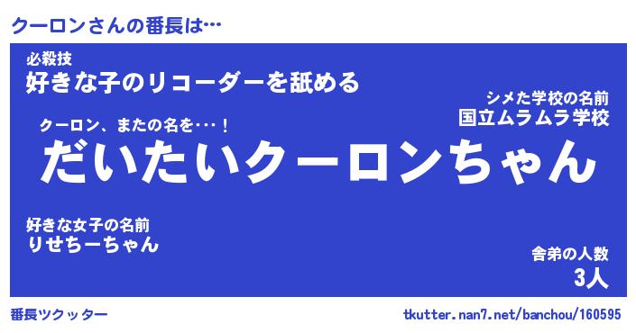 | 意味不明あだ名 | 『ペロリンクーロン』『永久保存クーロン』 |