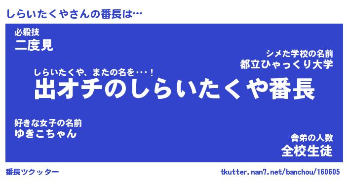| 肩書あだ名 | 『しらいたくや店長』『しらいたくや教頭』 |