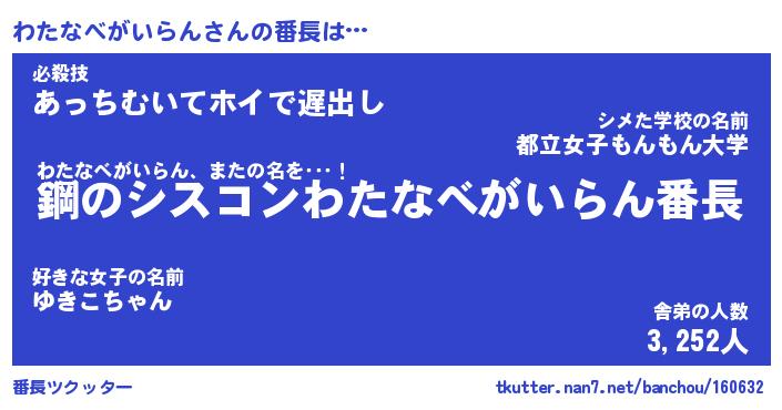 | ピコ太郎風あだ名 | 『ワコ五郎』『ピワ八郎』『ワタ六郎』 |