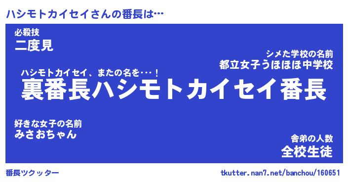 | 肩書あだ名 | 『ハシモトカイセイ店長』 |