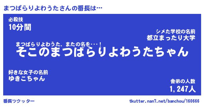| 胡散臭い通販商品みたいなあだ名 | 『モテモテ間違いなしブレスレット…その名も「まつばらりよわうた」』 |