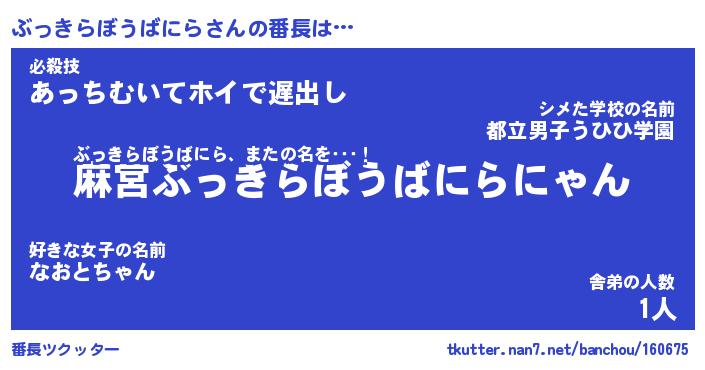 | 伝説のあだ名 | 『不死鳥のスナイパーぶっきらぼうばにら』 |