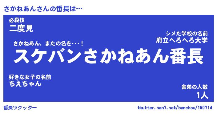 | 肩書あだ名 | 『さかねあん店長』『さかねあん国家主席』 |