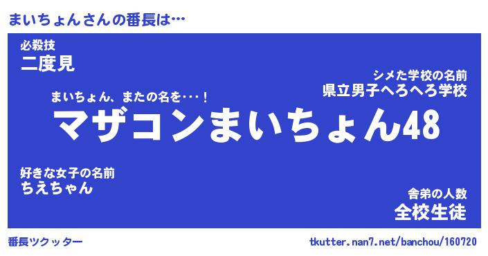 | ヒーロー風カッコイイあだ名 | 『スーパーマイチョン』『魔戒騎士マイ』 |