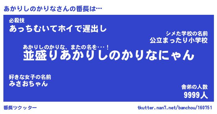 | ヒーロー風カッコイイあだ名 | 『スーパーアカリシノカリナ』 |