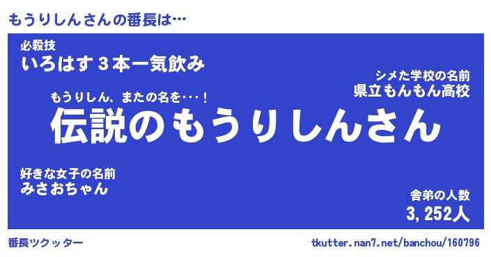 | 伝説のあだ名 | 『伝説のスナイパーもうりしん』 |