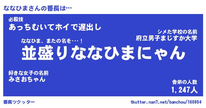 | 意味不明あだ名 | 『ペロリンななひま』『永久保存ななひま』 |