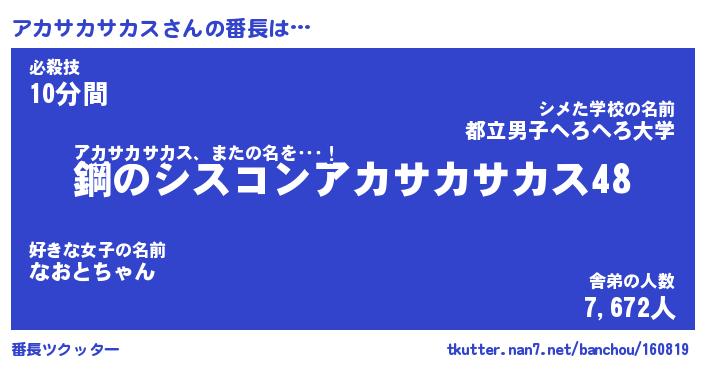 | 伝説のあだ名 | 『封印されしスナイパーアカサカサカス』 |