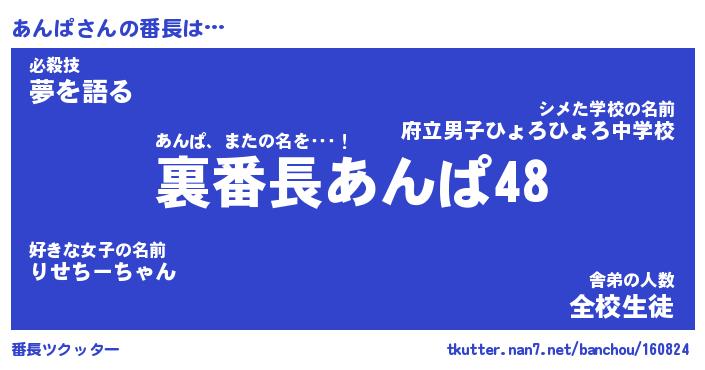 | 肩書あだ名 | 『あんぱ店長』『あんぱ総理大臣』 |