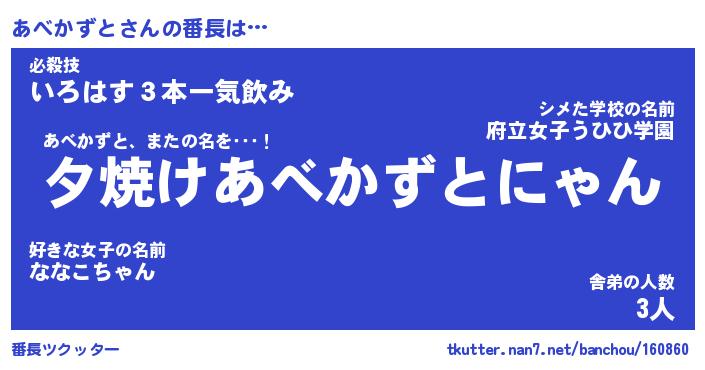 | ファンタジー風あだ名 | 『アベフェル』『エターナルアベカズトー』 |
