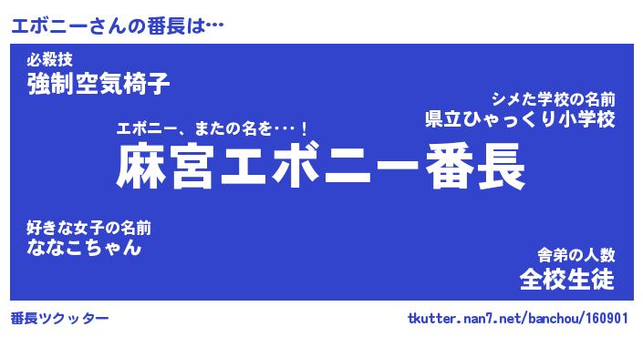| 意味不明あだ名 | 『ペロリンエボニー』『永久保存エボニー』 |