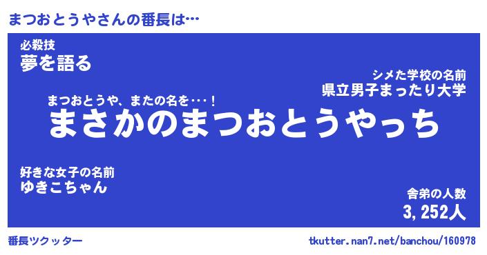 | ピコ太郎風あだ名 | 『マコ太郎』『ピマ太郎』『マツ五郎』 |