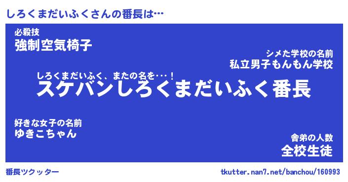 | 伝説のあだ名 | 『不死鳥のスナイパーしろくまだいふく』 |