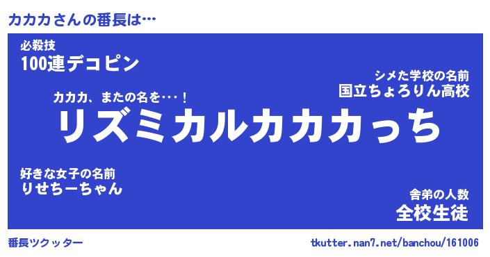 | 意味不明あだ名 | 『ペロリンカカカ』『カカカフォーエバー』 |