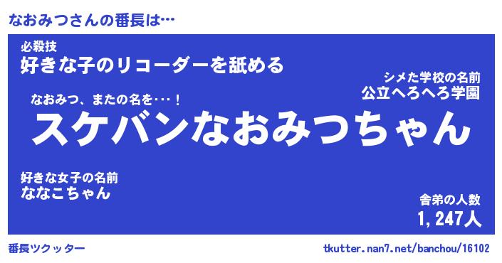 | 意味不明あだ名 | 『ペロリンなおみつ』『永久保存なおみつ』 |