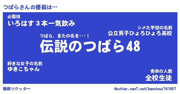 | 伝説のあだ名 | 『伝説のスナイパーつばら』 |