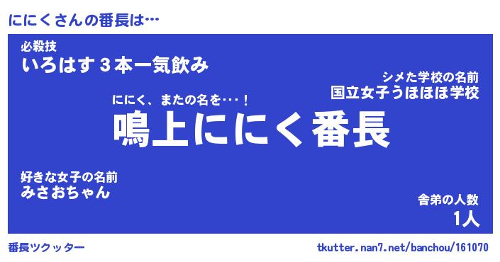 | ピコ太郎風あだ名 | 『ニコ太郎』『ピニ三郎』『ニニ二郎』 |