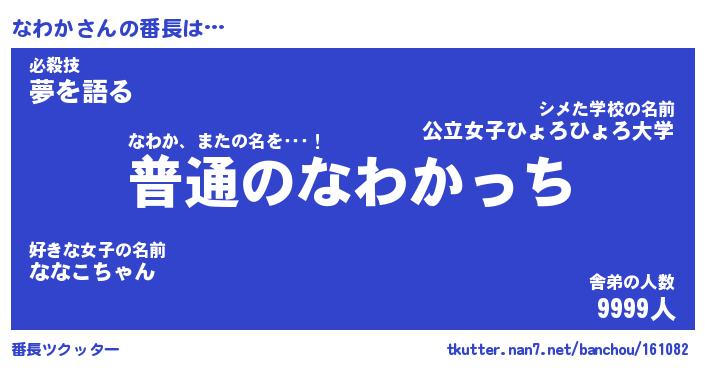 | 意味不明あだ名 | 『ペロリンなわか』『なわかフォーエバー』 |