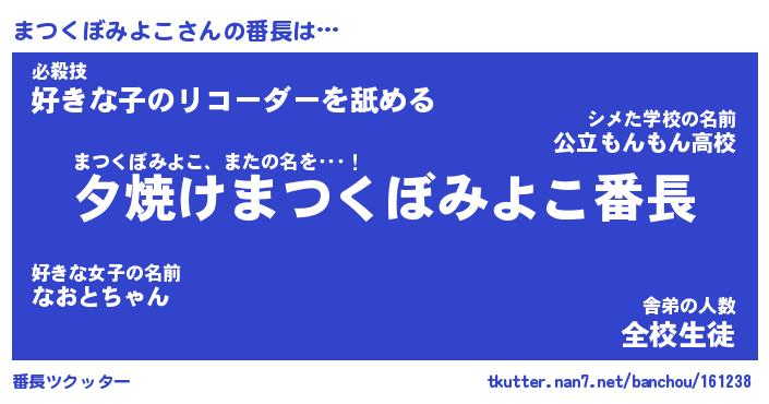 | 伝説のあだ名 | 『封印されしスナイパーまつくぼみよこ』 |