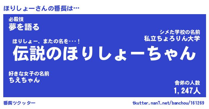 | 伝説のあだ名 | 『伝説のスナイパーほりしょー』 |