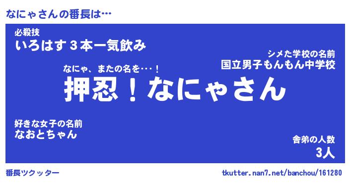 | ヒーロー風カッコイイあだ名 | 『スーパーナニャ』『ウルトラなにゃマン』 |