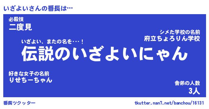 | ヒーロー風カッコイイあだ名 | 『スーパーイザヨイ』『魔戒騎士イザ』 |