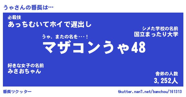 | 肩書あだ名 | 『うゃ御曹司』『うゃ国家主席』 |