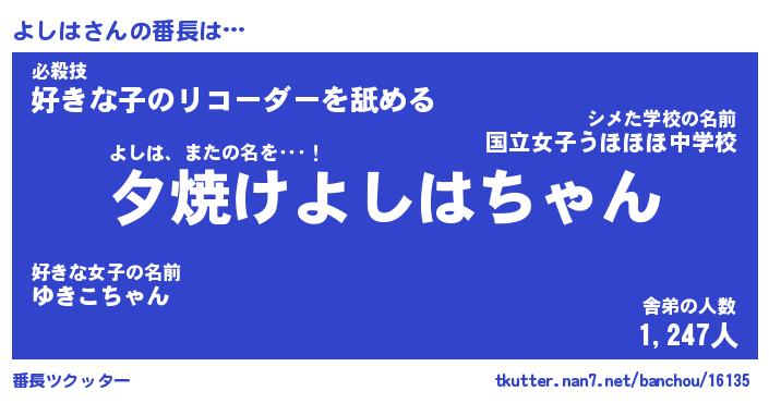 | 肩書あだ名 | 『よしは御曹司』『よしは総理大臣』 |