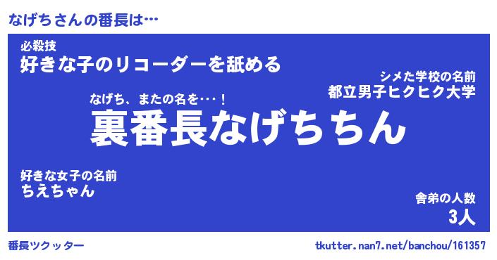| 意味不明あだ名 | 『ペロリンなげち』『なげちフォーエバー』 |