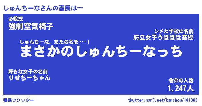 | 2回繰り返すあだ名 | 『しゅしゅ』『ししゅゅ』『ぬれぬれ』 |