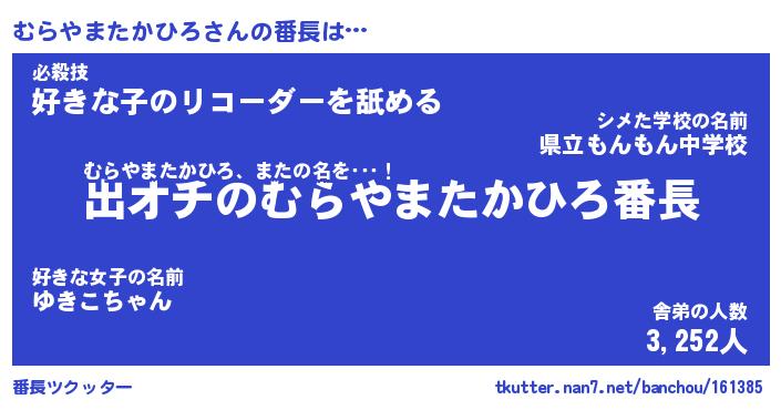| 伝説のあだ名 | 『伝説のスナイパーむらやまたかひろ』 |