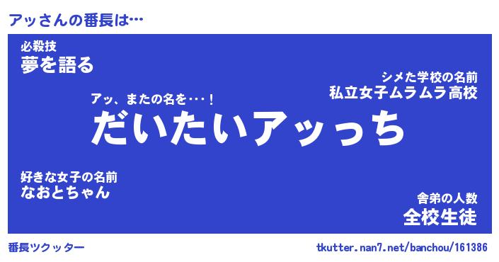 | ヒーロー風カッコイイあだ名 | 『スーパーアッ』『ウルトラアッマン』 |