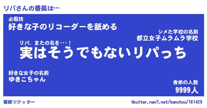 | ヘコむあだ名 | 『リパっふぃ~』『牛乳』『リパを』 |