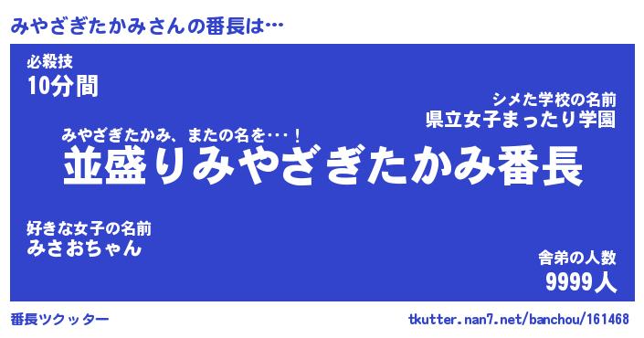 | 男性向けラノベタイトル風あだ名 | 『みやざぎたかみの憂鬱』 |