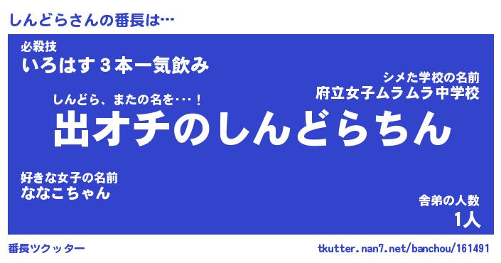 | 2回繰り返すあだ名 | 『しんしん』『ししんん』『いじいじ』 |