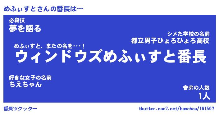 | 肩書あだ名 | 『めふぃすと社長令嬢』『めふぃすと担任』 |
