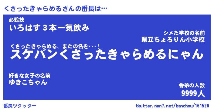 | ピコ太郎風あだ名 | 『クコ十郎』『ピク史郎』『クサ史郎』 |
