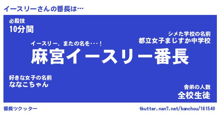 | ヒーロー風カッコイイあだ名 | 『スーパーイースリー』『暗黒騎士イー』 |