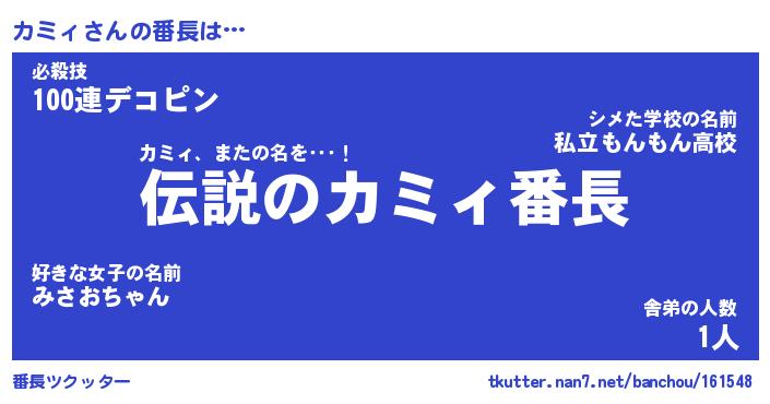 | ヒーロー風カッコイイあだ名 | 『スーパーカミィ』『ウルトラカミィマン』 |