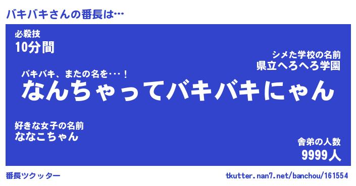 | ヒーロー風カッコイイあだ名 | 『スーパーバキバキ』『天弓騎士バキ』 |