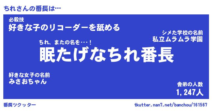 | ヒーロー風カッコイイあだ名 | 『スーパーチレ』『ウルトラちれマン』 |