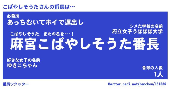 | 恥ずかしいあだ名 | 『プリティーこばやしそうた』『こばちん』 |