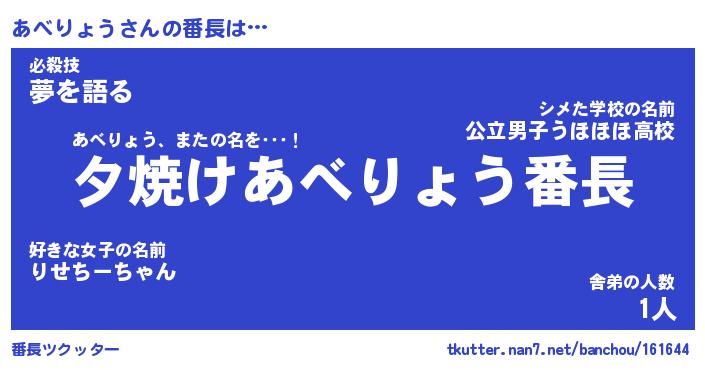 | 伝説のあだ名 | 『封印されしスナイパーあべりょう』 |