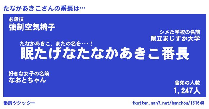| 恥ずかしいあだ名 | 『プリティーたなかあきこ』『たなっちょ』 |