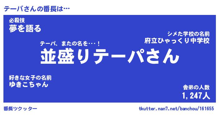 | ヒーロー風カッコイイあだ名 | 『スーパーテーパ』『ウルトラテーパマン』 |