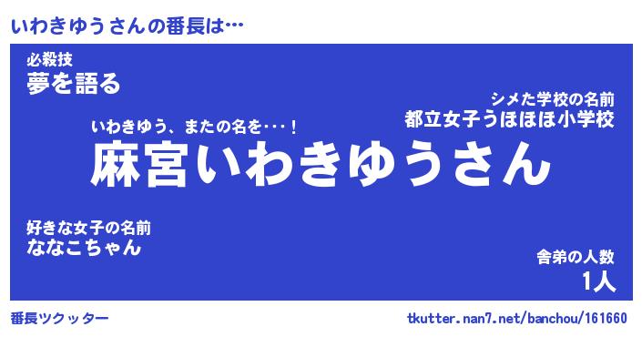 | ファンタジー風あだ名 | 『イワフェル』『エターナルイワキユウー』 |